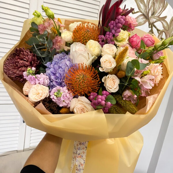 Каждый букет создан флористами Salon Floral с вниманием к деталям и эстетике. Мы тщательно подбираем свежие цветы, устойчивые к транспортировке и сохраняющие внешний вид в течение нескольких дней.