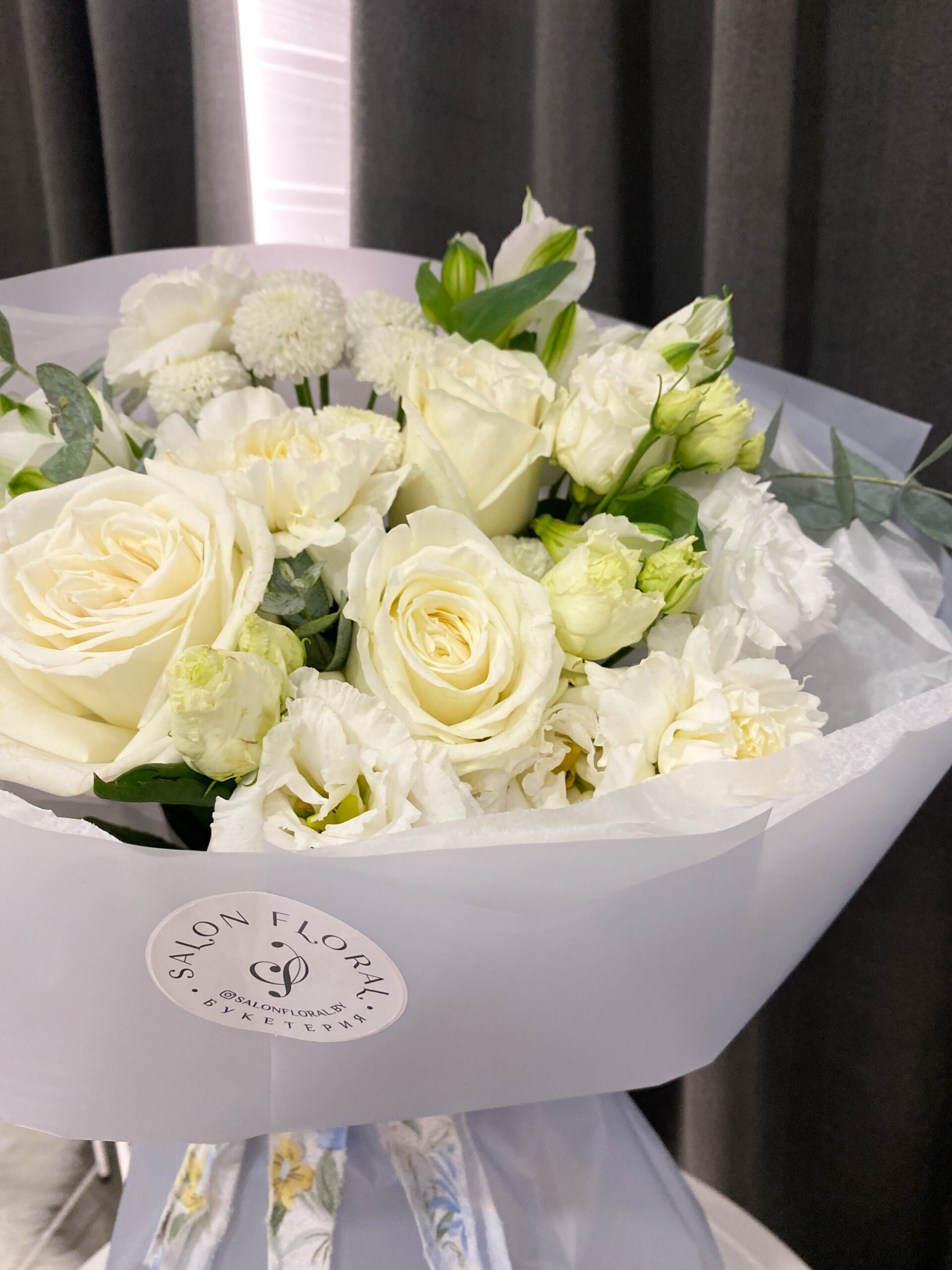 Букетерия Salon Floral оставляет за собой право вносить незначительные корректировки в состав букета с учётом сезонности цветов и наличия цветов в салоне на момент оформления заказа.